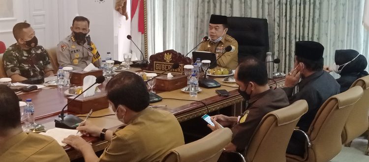 SINARJAMBI.COM – Gubernur Jambi Dr.H.Al Haris,S.Sos.,M.H., mengintruksikan Bupati dan Walikota se-Provinsi Jambi untuk segera memenuhi target vaksinasi nasional sesuai arahan Bapak Menteri Dalam Negeri. Hal ini disampaikan Al Haris pada Rapat bersama Forkompimda dalam rangka Tindak Lanjut Arahan Menteri Dalam Negeri terkait Penanggulangan Covid-19 masa Natal 2021 dan Tahun Baru 2022 secara Virtual, yang berlangsung di Ruangan Video Conference Rumah Dinas Gubernur Jambi, Selasa (28/12/2021).
