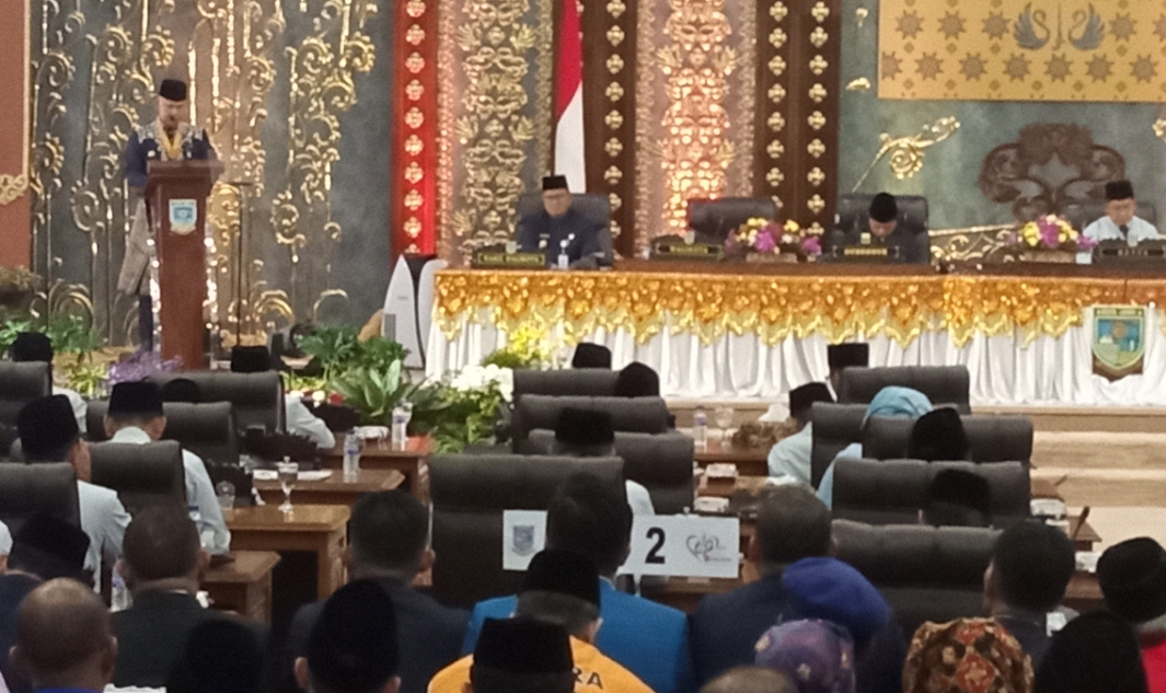 Diantara yang dipaparkan Fasha yakni terkait Pendapatan Asli Daerah, Indek Pembangunan Manusia (IPM), investasi yang masuk, angka kemiskinan yang menurun, bidang kesehatan dan pendidikan sampai pembangunan jalan dan pedestarian. Sidang paripurna dibuka Ketua DPRD Kota Jambi Putra Absor Hasibuan yang didampingi unsur pimpinan DPRD kota Jambi lainnya, Senin (29/5/2023) pagi.
