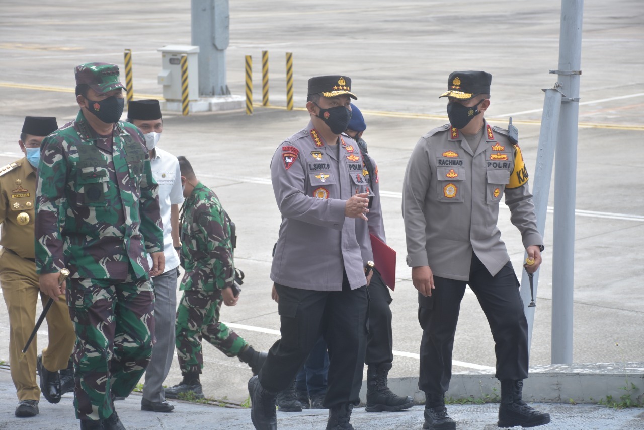 Kabid Humas Polda Jambi Kombes Pol Mulia Prianto, S.Sos, Sik mengatakan hari ini, sekitar pukul 11.30 Panglima TNI dan Kapolri tiba dengan menggunakan Pesawat TNI AU di Provinsi Jambi dalam rangka kunjungan kerja dan disambut oleh Forkopimda Jambi.