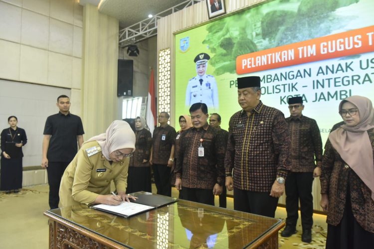 SINARJAMBI.COM – Penjabat (Pj) Wali Kota Jambi Sri Purwaningsih melantik Tim Gugus Tugas Pengembangan Anak Usia Dini Holistik Integratif (PAUD-HI) Kota Jambi, Selasa (16/7/2024) pagi.