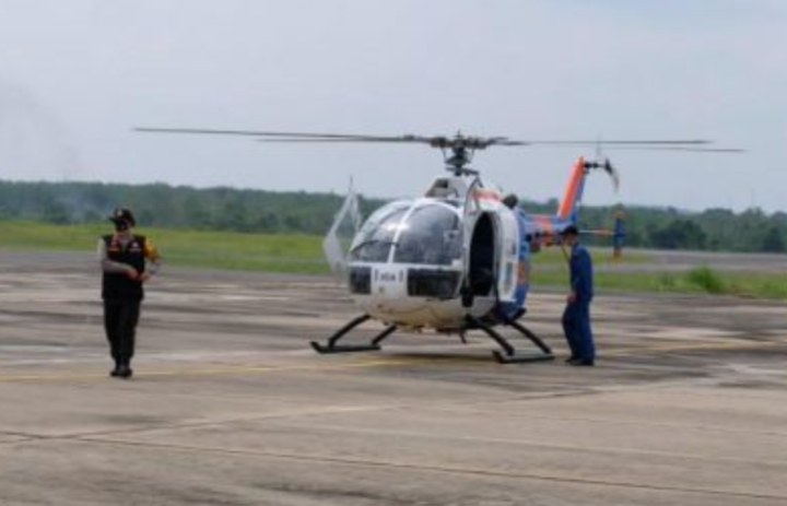 Dipiloti Kompol Mahardita dan Kompol Aldi, heli menyasar kawasan Bajubang di kabupaten Batanghari serta kawasan Mestong dan Sungai Bahar di kabupaten Muarojambi.