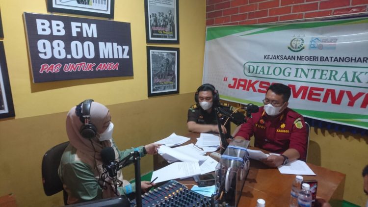 Program menyapa tersebut dilaksanakan pada Kamis (7/10/2021) sekira pukul 09.00 Wib, bertempat di Radio Bahana 98.00 FM Batanghari. Dimana, narasumber pada kegiatan tersebut yaitu, Kepala Seksi Intelijen Kejari Batanghari Aulia Rahman S.H dan Kasubsi Pra Penuntutan Pidana Umum Yudi Adhyansyah SH.