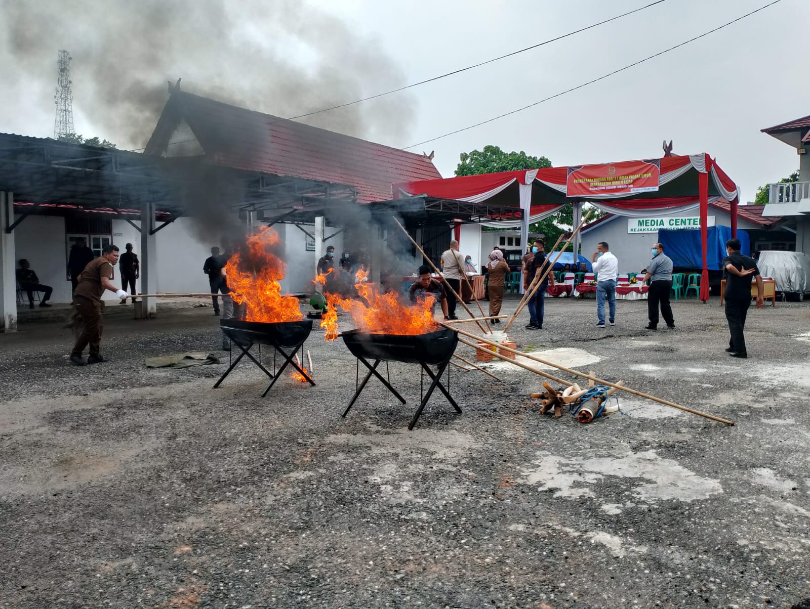Pemusnahan dipimpin Kajari Merangin Tri Widodo, SH MH dan dihadiri pejabat Kejari Merangin lainnya. Tampak juga Kasat Narkoba Polres Merangin, perwakilan dari Lapas kelas IIb Bangko serta Waka Polres Merangin dan Lurah Pematang Kandis.