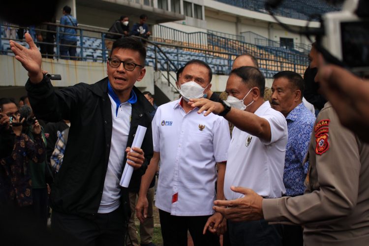 SINARJAMBI.COM – Ketua Umum PSSI, Mochamad Iriawan mendampingi Menpora, Zainudin Amali untuk melihat dan mengecek langsung Stadion Gelora Bandung Lautan Api, Bandung (GBLA), Jumat (22/7).