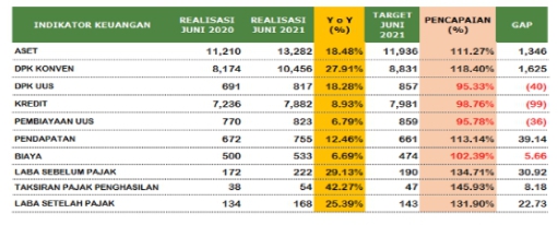 Sementara itu indikator kinerja Bank Jambi cukup cemerlang untuk posisi semester 1 2021 ditandai dengan perolehan laba setelah pajak year on year (yoy) tumbuh 25,39 persen atau sebesar Rp. 168 miliar atau melebihi 32 persen dari target laba Juni Rencana Bisnis 2021.