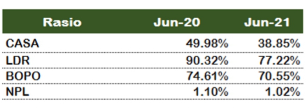 “Sementara dari sisi dana pihak ketiga tumbuh 21,75 persen (yoy) menjadi sebesar Rp. 9,385 triliun, cukup signifikan di tengah pandemi ini sehingga mampu menjaga LDR pada level 90,51 persen. Rasio BOPO menguat pada level 69,83 persen sebagai wujud keberhasilan program efisiensi biaya, sementara NPL terdepresiai tipis 0,01 persen (yoy) cenderung stabil dari tahun sebelumnya sebesar 0,79 persen,” jelasnya.