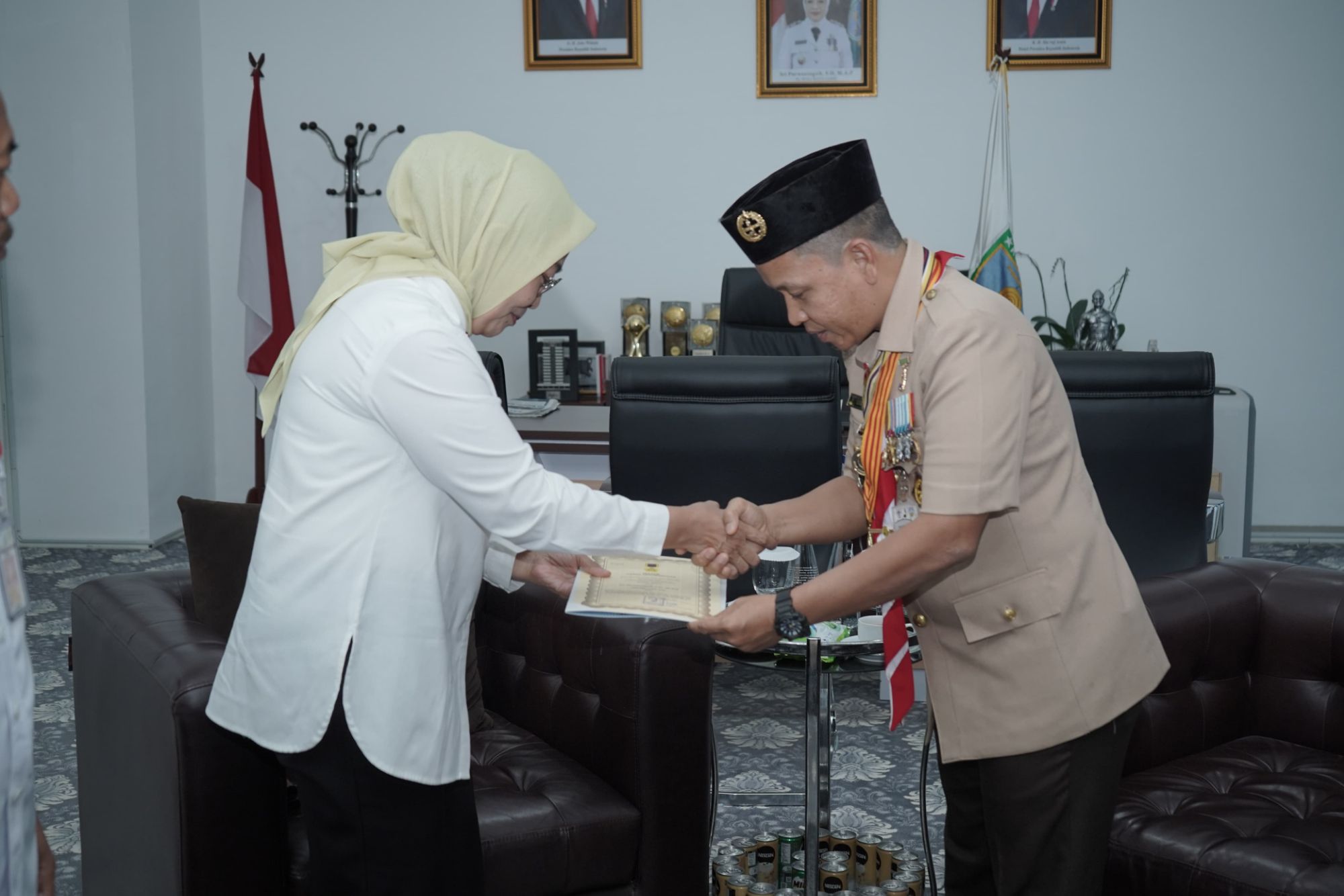 SINARJAMBI.COM – Kwartir Nasional (Kwarnas) Gerakan Pramuka memberikan penghargaan kepada Penjabat (Pj) Wali Kota Jambi Sri Purwaningsih selaku Ketua Pembimbing Cabang (Kamabicab) Gerakan Pramuka Kota Jambi. Penyematan tanda penghargaan Lencana Darma Bakti Pramuka dan SK penghargaan dari Kwarnas Gerakan Pramuka yang ditandatangani oleh Ka Kwarnas Budi Waseso itu diserahkan oleh Sekretaris Kwartir Daerah (Kwarda) Gerakan Pramuka Provinsi Jambi Yevi Rivaldo, Rabu (11/09/2024).