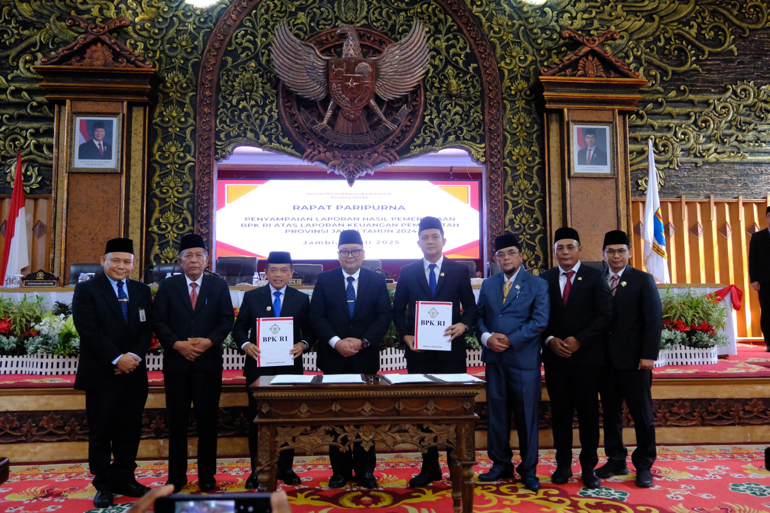 Pada rapat paripurna ini juga dilakukan penandatangan berita acara dan penyerahan LHP BPK. Widhi Widayat menyerahkan LHP kepada Gubernur Jambi Al Haris dan juga Ketua DPRD Provinsi Jambi M. Hafiz.