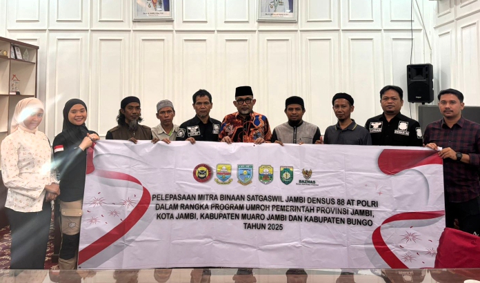 SINARJAMBI.COM – Sekretaris Daerah (Sekda) provinsi Jambi Dr H Sudirman, SH, MH melepas 4 warga binaan Satgaswil Jambi Densus 88 AT Polri untuk menunaikan ibadah umroh ke tanah suci Mekah dan Madinah.