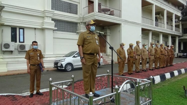 SINARJAMBI.COM – Sekretaris Daerah (Sekda) Provinsi Jambi, H.Sudirman,S.H.,M.H., menegaskan kepada seluruh Apartur Sipil Negara (ASN) dan Pegawai Tidak Tetap (PTT) lingkup Sekretariat Daerah Provinsi Jambi untuk kembali melaksanakan apel kedisplinan pagi dan sore setiap hari jam kerja. Hal tersebut disampaikan Sekda saat memimpin secara langsung Apel Kedisiplinan Senin Pagi, yang berlangsung di Lapangan Dalam Kantor Gubernur Jambi, Senin (06/12).