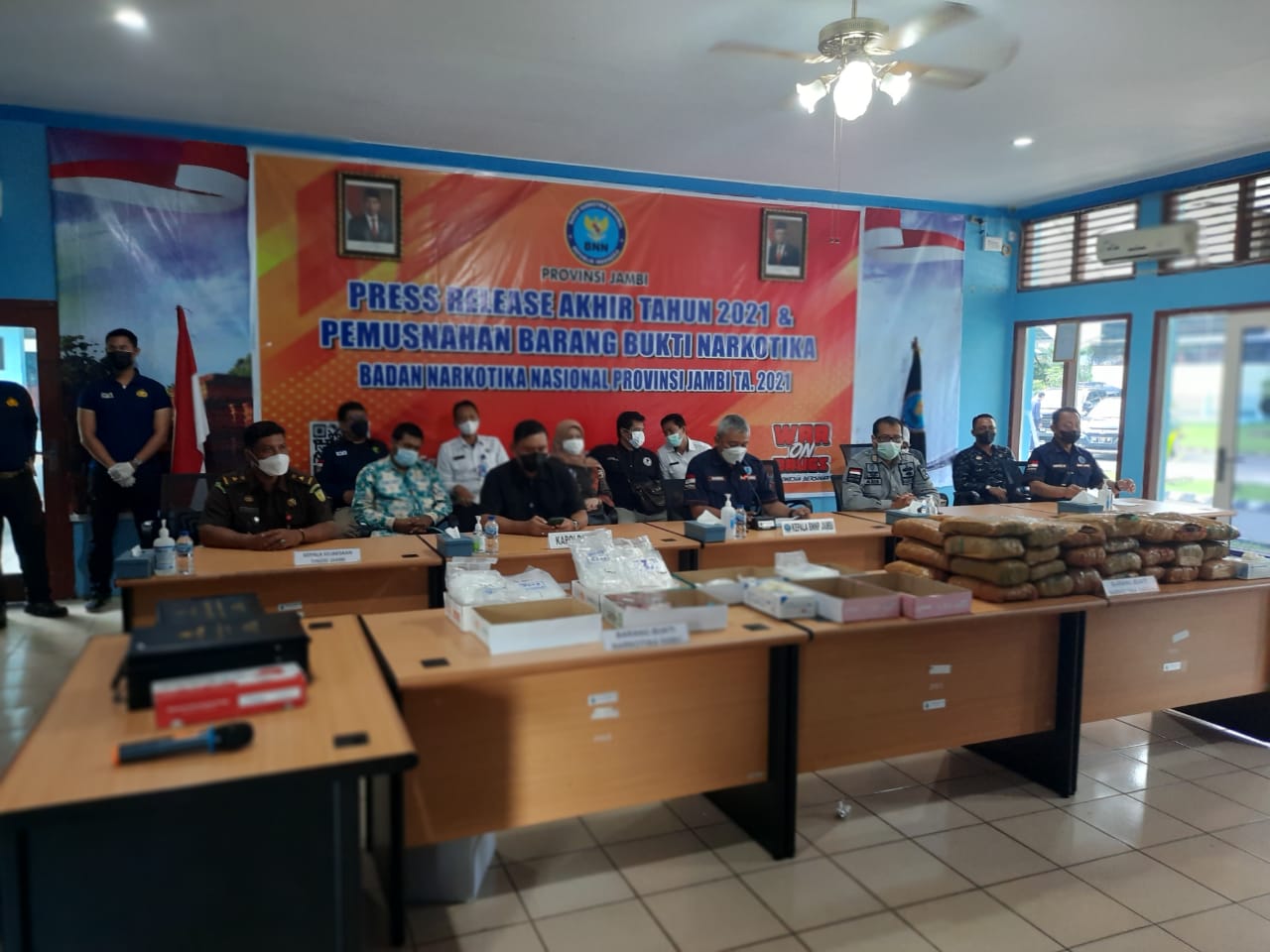 Badan Narkotika Nasional Provinsi Jambi dalam melaksanakan rilis akhir tahun juga sekaligus pemusnahan barang bukti narkotika yang dilaksanakan di kantor BNNP Jambi. BNN Jambi juga terus bekerja secara maksimal dalam rangka pencegahan dan pemberantasan narkotika di Provinsi Jambi.