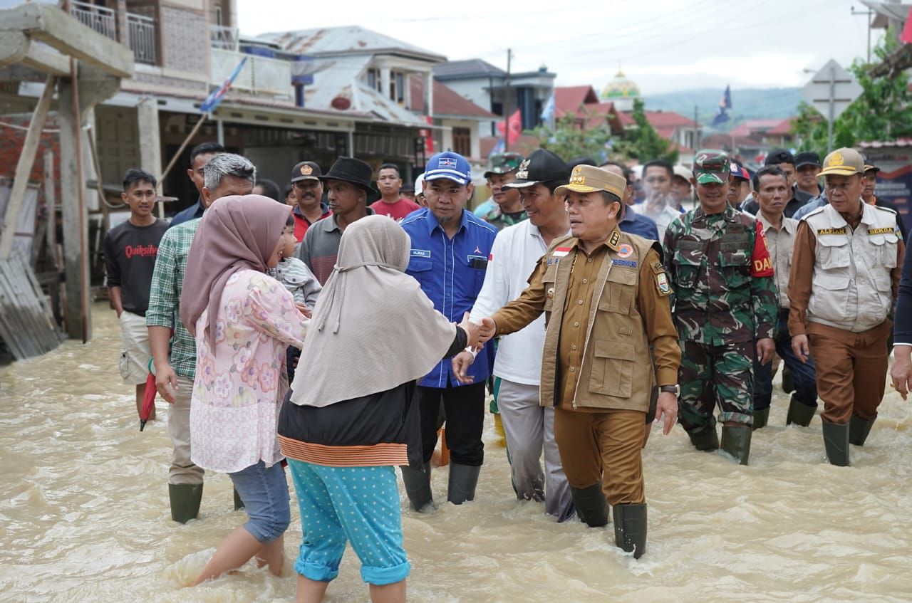 Saat meninjau banjir, Al Haris yang didampingi Pj Bupati Kerinci Asraf mengecek kesiapan personel seluruh instansi terkait dalam membantu pengamanan banjir. Diantaranya tim dari BPBD Jambi dan unsur TNI-Polri.