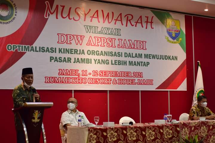 SINARJAMBI.COM – Wakil Gubernur Abdullah Sani membuka Musyawarah Wilayah (MUSWIL) II Asosiasi Pedagang Pasar Seluruh Indonesia (APPSI) Di Rumah Kito Resort Hotel, Minggu (12 September 2021).
