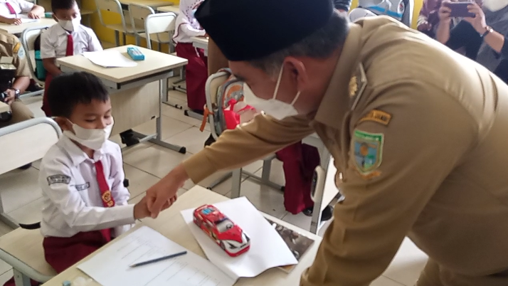“Senang Pak. Bisa ketemu guru dan teman-teman sekolah,” jawab salah seorang murid SDN 36 saat ditanya Fasha.
